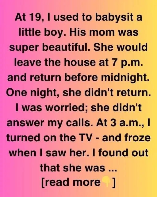 At 19, I used to babysit a little boy. His mom was super beautiful. She would leave the house at 7 p.m. and return before midnight.